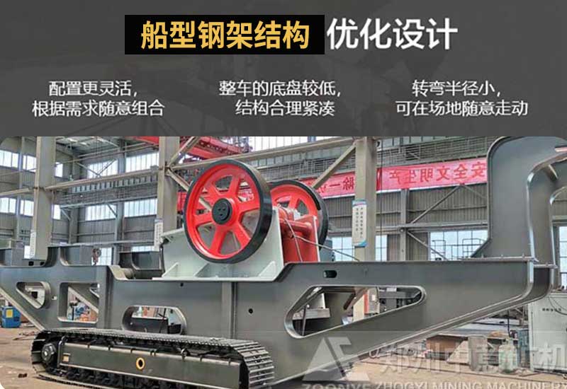 鄂式履帶式移動破碎站所有部件機載,包括:牢固的機架、鄂式破破碎機、給料機、振動篩、傳送帶、電動機和控制箱等。