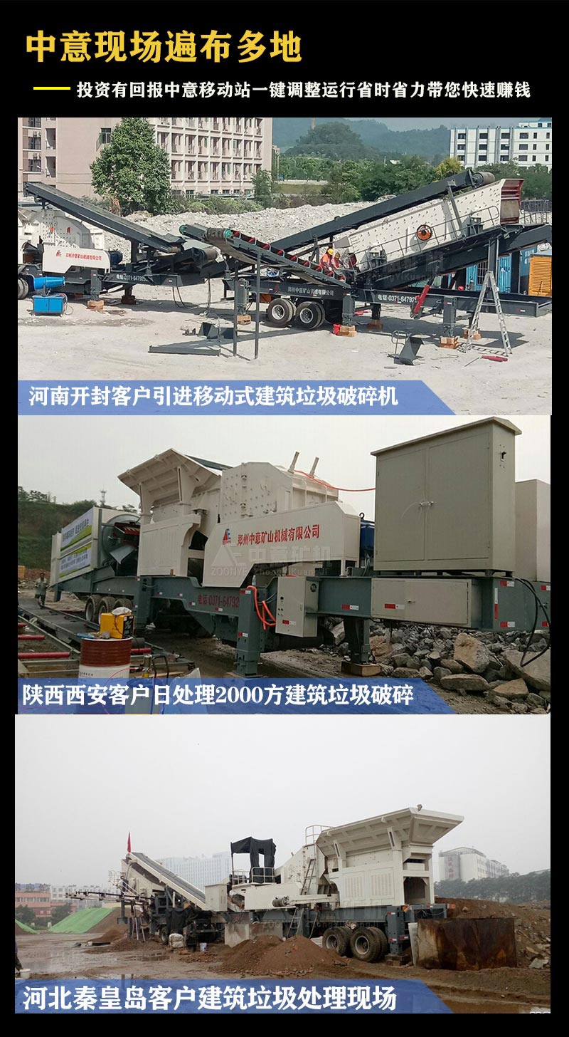 中意礦機這款移動式建筑固廢回收裝備,把建筑垃圾破碎機和篩分機安裝在機一個拖車上, 解決傳統生產線固定之后不便移動的問題,同時解決破碎和篩分兩個流程,是一款篩分細碎一體機。整套設備外觀制作、整體結構品質優,較之前的移動式建筑垃圾處理設備相比,全系配置新型主機設備,轉速、動力飽滿強勁,項目作業出產能力,更加穩定、可靠;兼顧半移動生產線設計理念,配置雪橇式自動升降基礎,既具備快速轉場、安裝便捷,模式切換后,又能當固定線使用,是固廢、洞渣處理和小型骨料線投資的理想選擇!