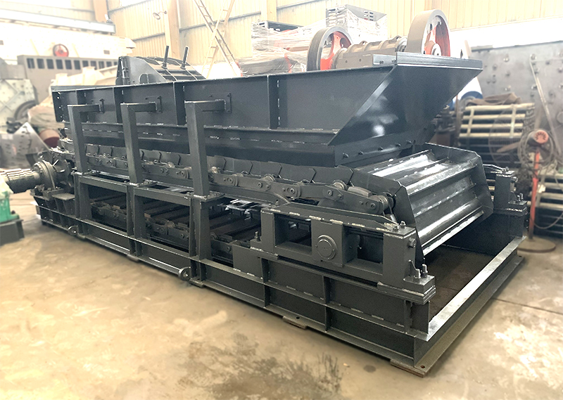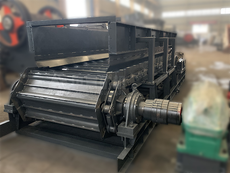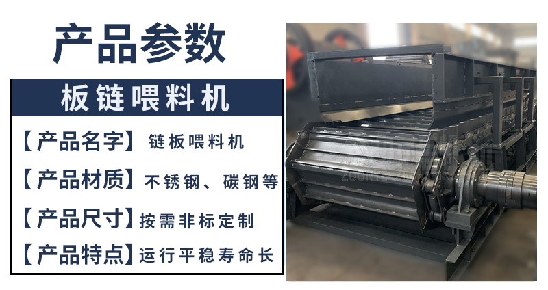 鏈板喂料機是積累了多年制造經驗研發的一種喂料設備。由驅動鏈輪裝置、張緊鏈輪裝置、運載機構、機架、防護罩、送料輥輪、回程輥輪等組成。喂料機尾部裝置采取特殊設計,特別適用于粘性大的物料,不會聚積尾部而造成鏈條出現跳齒現象,而且給料量大小可調。具有結構簡單,造價低,維修方便,可承受大塊物料的沖擊,節約原料,使用壽命長,噪音小等優點。適合大型及中型礦山、磚廠、建材、化工等行業。鏈板喂料機、鏈板喂料機、鏈板喂料機廠家規格,長度可根據客戶的現場尺寸定作。
