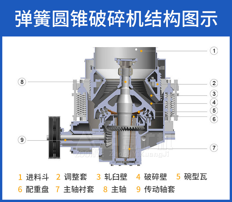 1、圓錐破碎機(jī)結(jié)構(gòu):